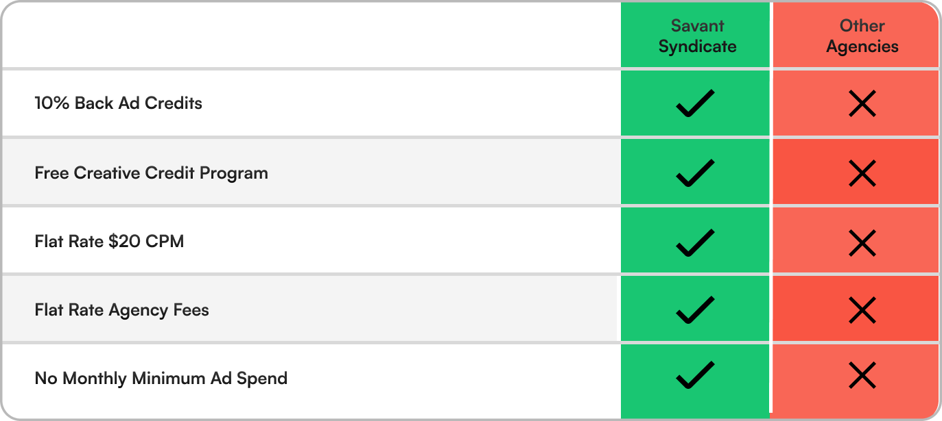 Earn creative credits with your CTV spend that you can redeem for fully produced end-to-end TV commercials (15s/30s + cutdowns). Pick a package, redeem credits, and keep fresh ad creative in your marketing mix to prevent ad fatigue